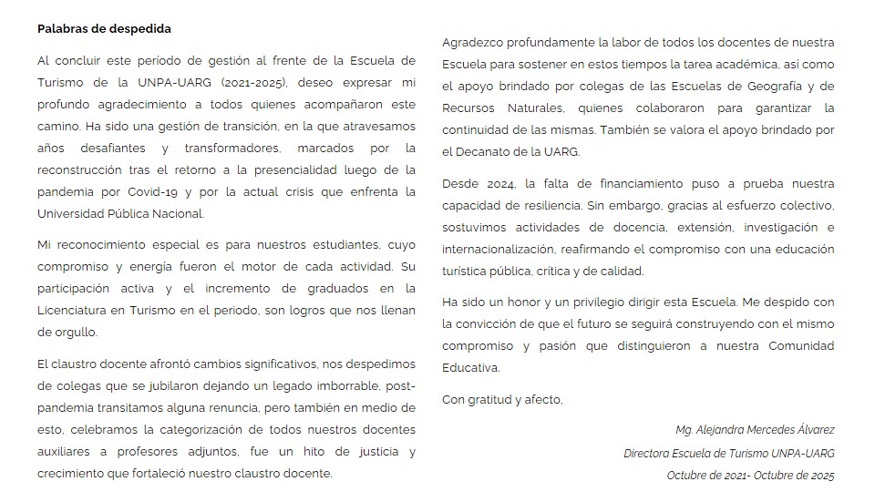 #DespedidaDirectora #Gestión2021-2025 #EscuelaDeTurismoUARG #UNPAUARG #Turismo #MemoriaDeGestion